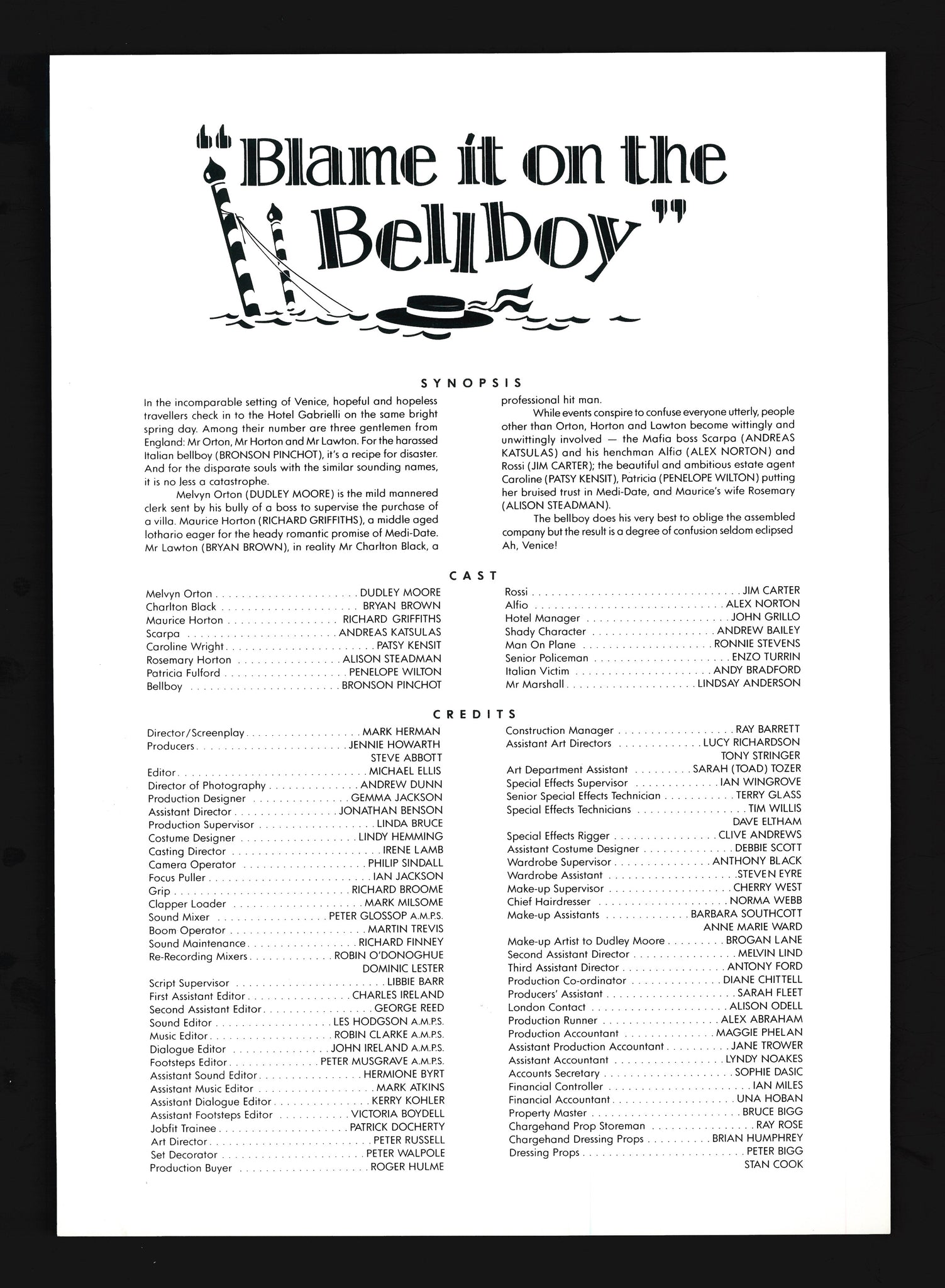 Blame It on the Bellboy, 1992 Press Kit