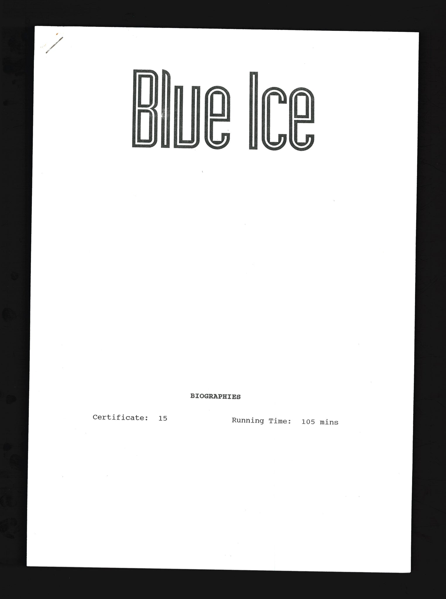 Blue Ice, 1992 Press Kit