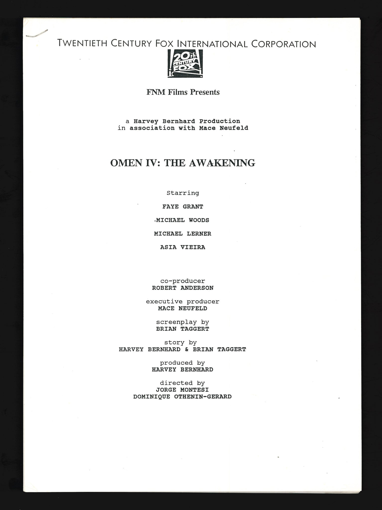 Omen IV: The Awakening, 1991 Press Kit