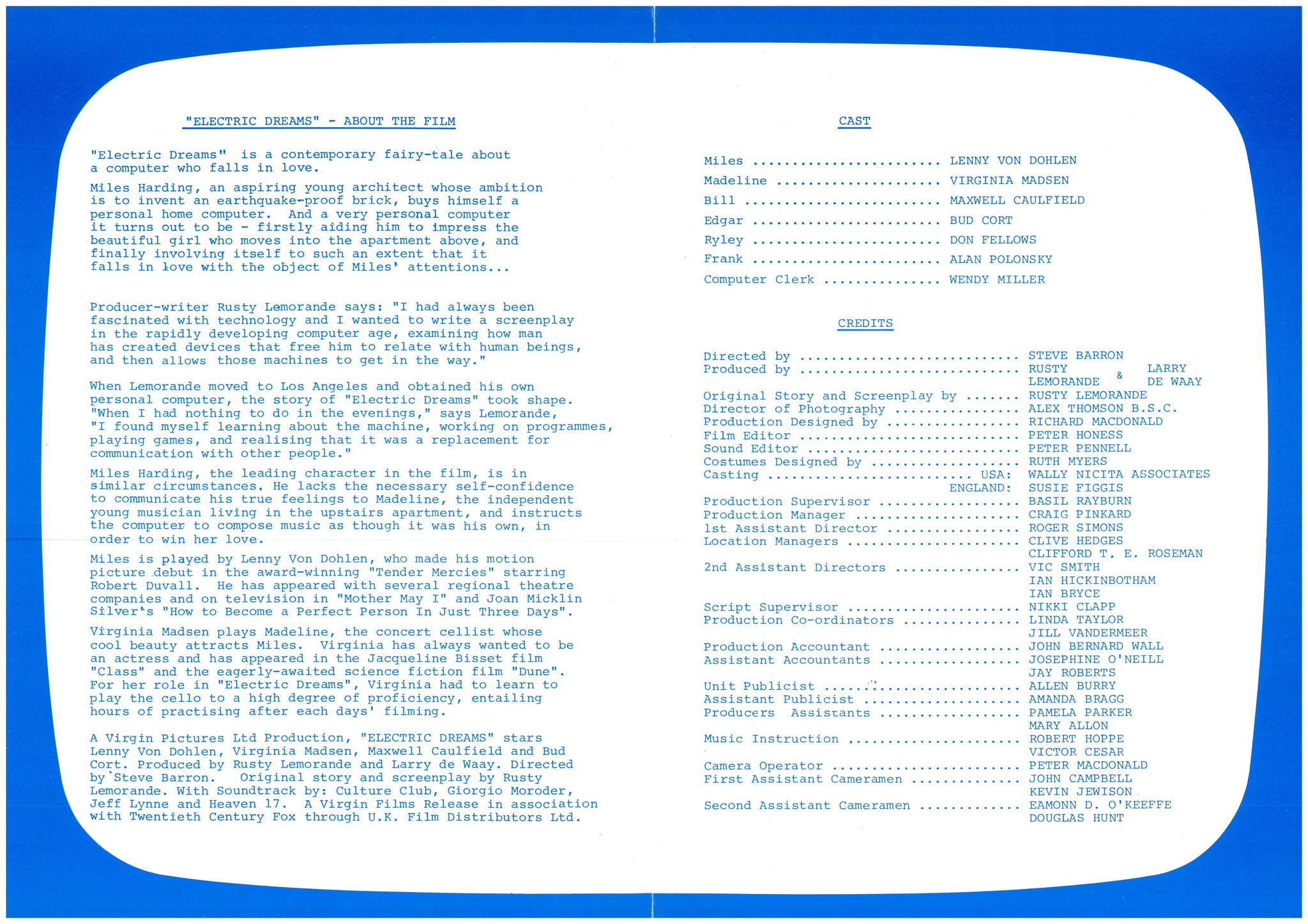 Electric Dreams, 1984 Press Kit