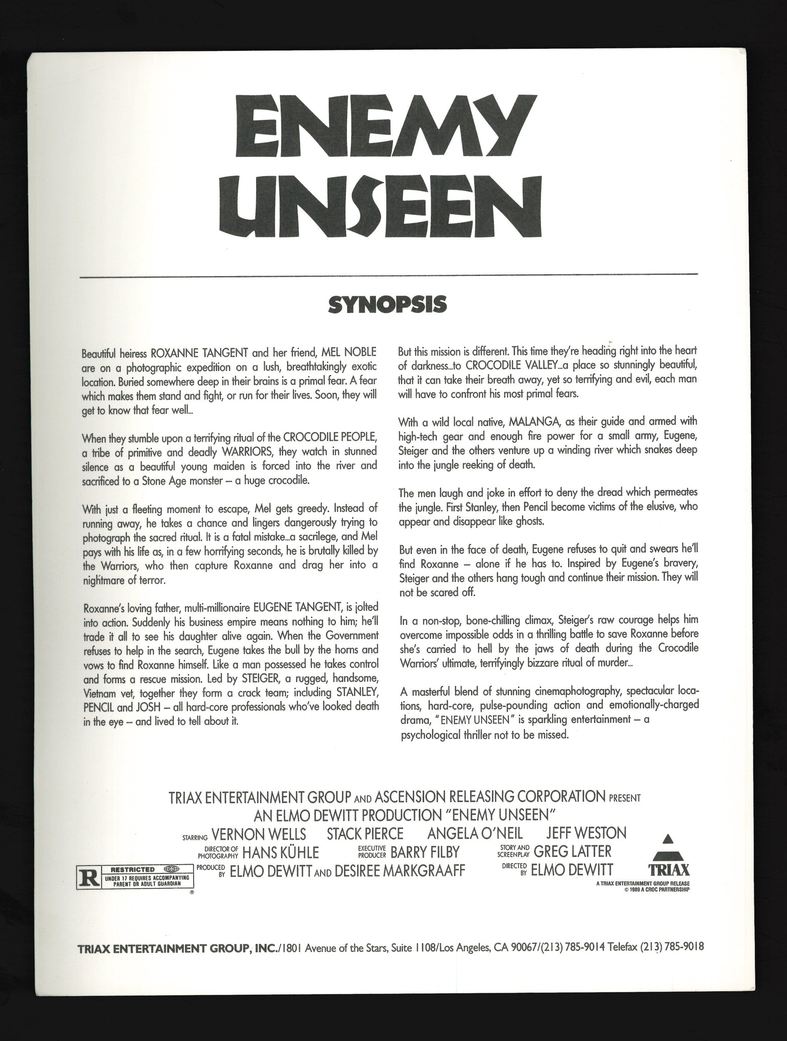 Enemy Unseen, 1989 Press Kit