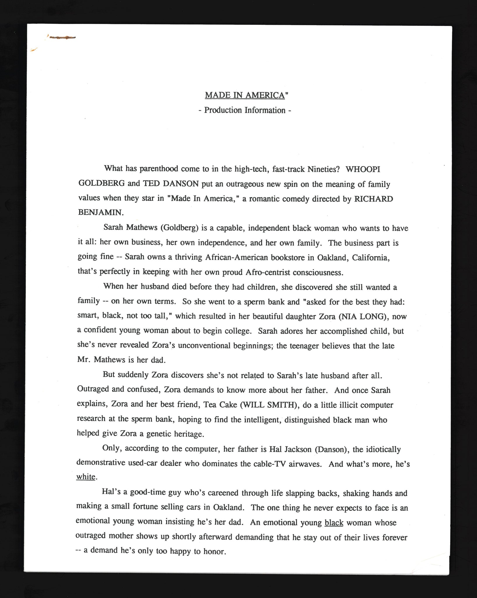 Made In America, 1993 Press Kit
