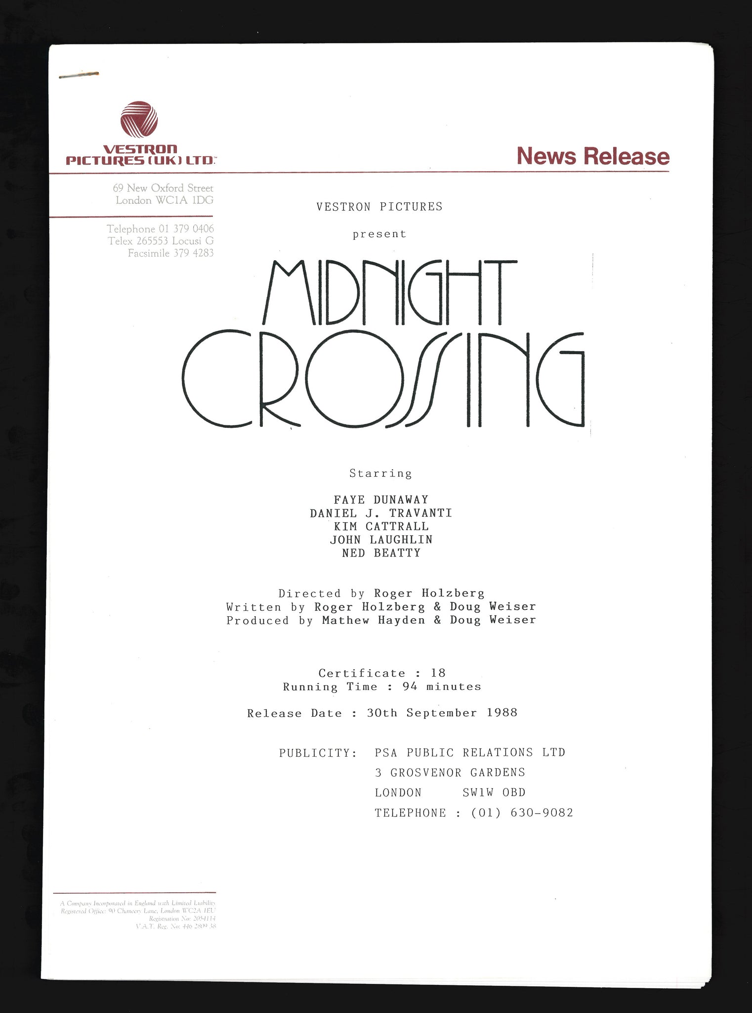 Midnight Crossing, 1988 Press Kit