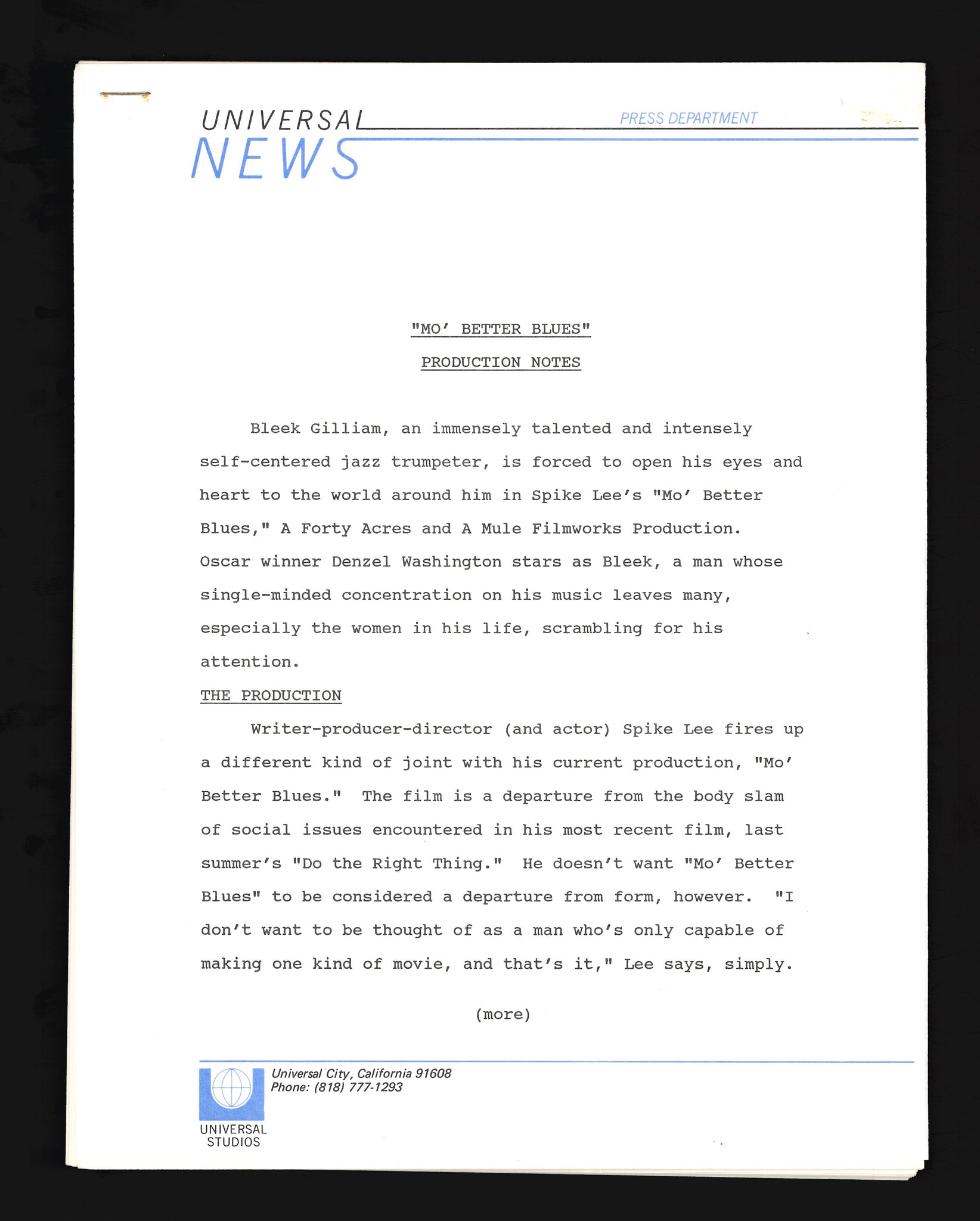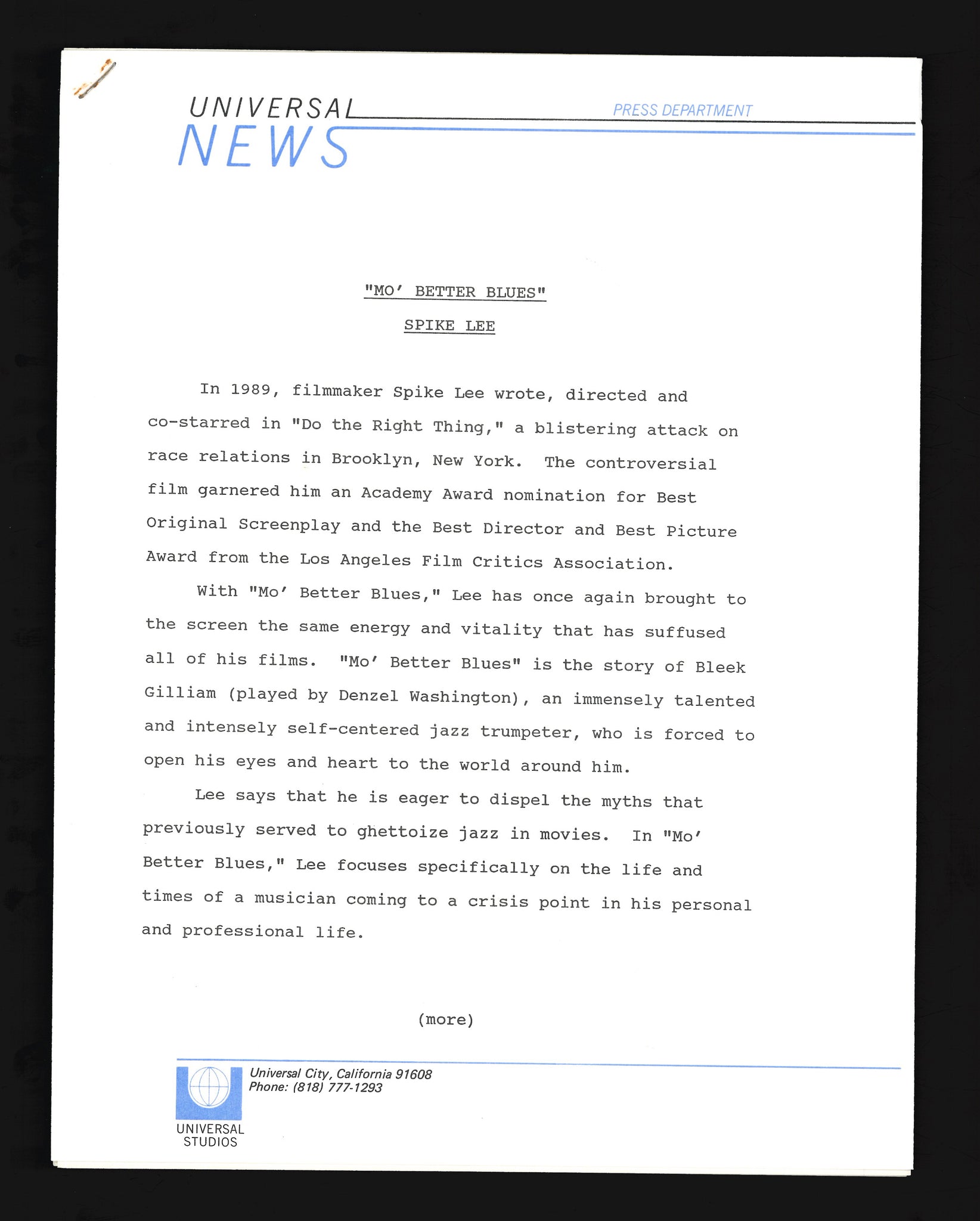 Mo Better Blues, 1990 Press Kit