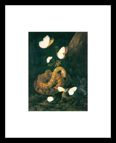 Karl Wilhelm de Hamilton A snake poised to attack a lizard as it eats a butterfly Window Mounted Tear sheet