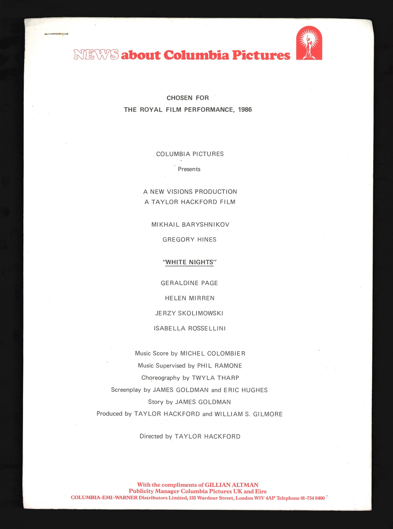 White Nights, 1985 Press Kit