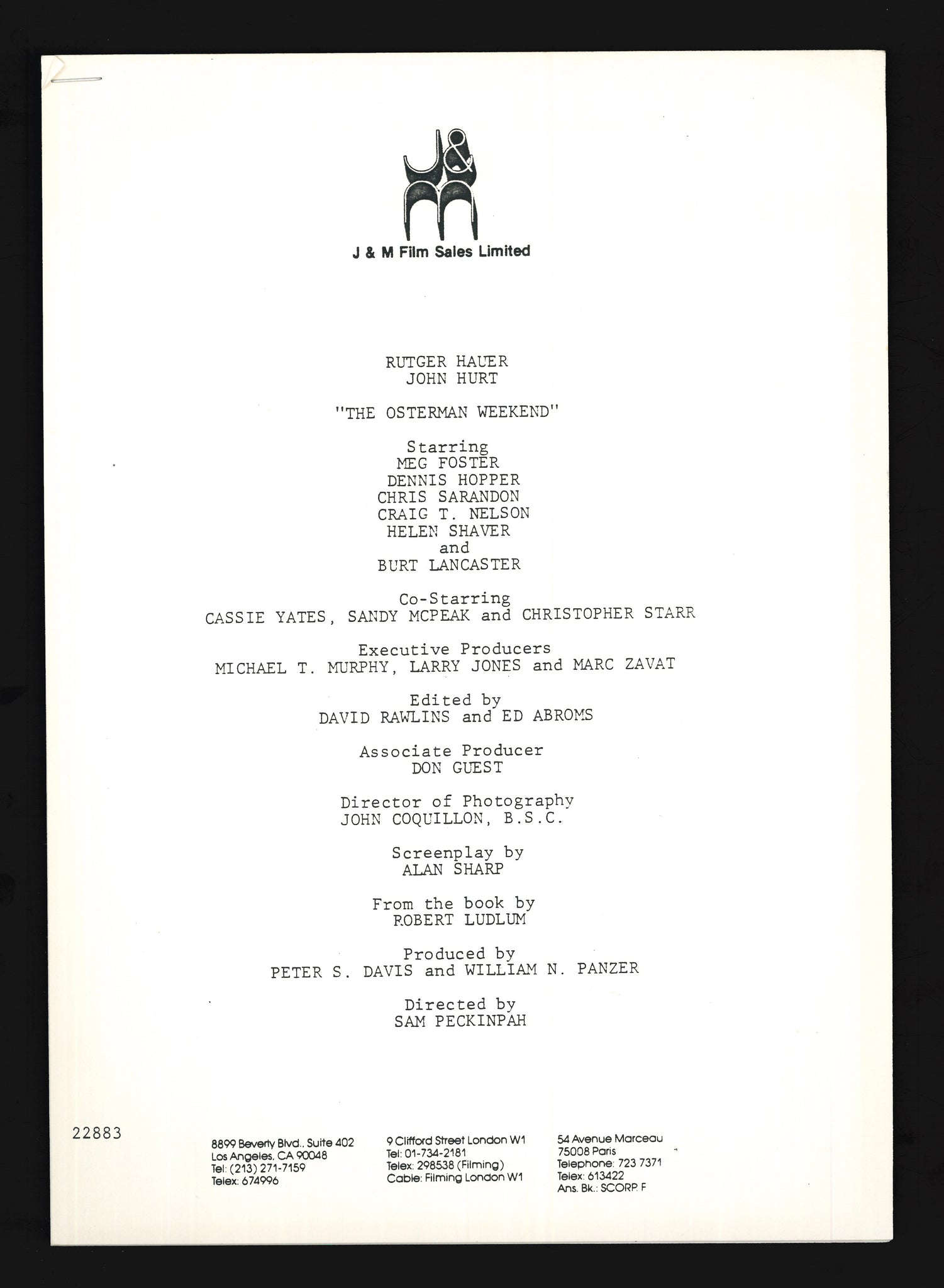 Osterman Weekend, 1983 Press Kit